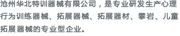 滄州華北特訓器械有限公司成立于2002年,是專業(yè)研發(fā)生產心理行為訓練器械、拓展器械、拓展器材、攀巖、兒童拓展器械的專業(yè)型企業(yè),并通過ISO-9001質量管理體系認證及ISO-14001環(huán)境管理體系認證,致力于各職業(yè)群體提供的心理行為訓練器械、拓展器械、攀巖、兒童拓展器械等設備,使之不斷提升心理健康水平、充分開發(fā)自我潛能。我公司竭誠為廣大客戶提供專業(yè)化各類心理行為訓練器械相關產品和服務。