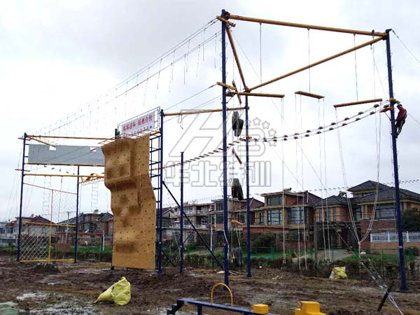 規(guī)格:占地17米×17米,由15個1米×1米×4米高的站臺組成。平臺高2米。起點和終點設有樓梯。   包含項目:獨木橋、勇往直前、圓木橋、圓木秋千、等…